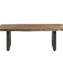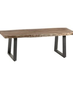 The beautiful natural wood grain is complemented with sturdy contemporary metal frame legs, sled shaped.