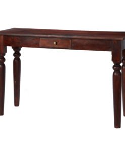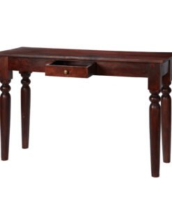 Hand made from Solid Mango Wood featuring brass handles and drawer in dark Mahogany hue.